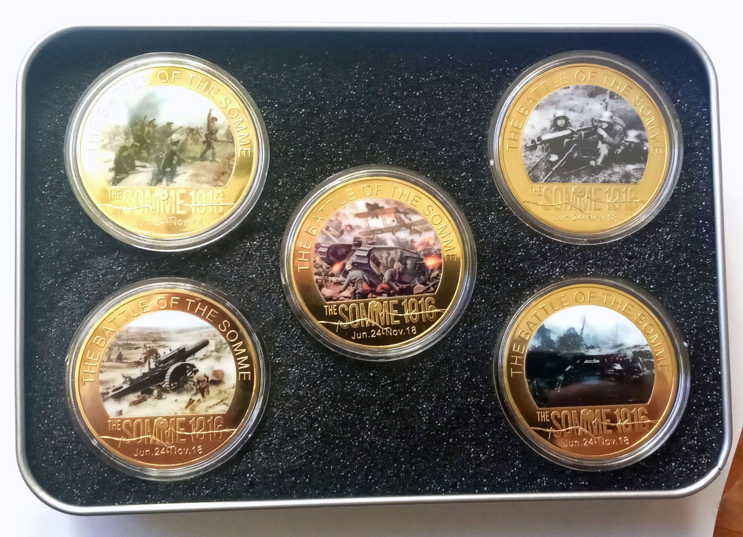 1916, I. VILÁGHÁBORÚ - SOMME-I CSATA, ARANYOZOTT EMLÉKÉREM SZETT, PP!